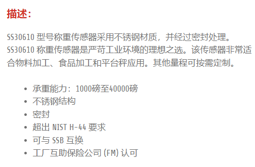 ARTECH 称重传感器SS 30610系列