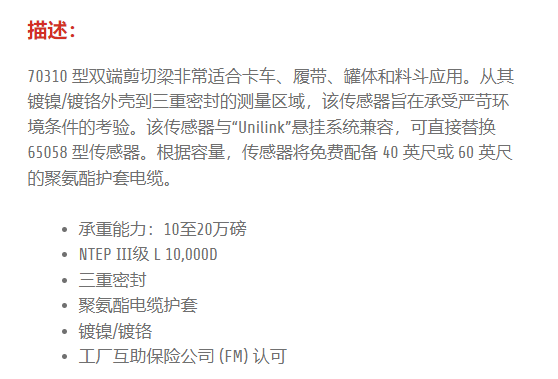 ARTECH 称重传感器70310系列