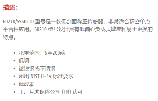 ARTECH 称重传感器60210/SS 60210系列